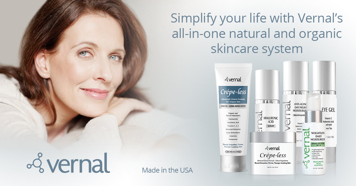 Since 2013, Vernal Brands has helped hundreds of thousands of women and men simplify their skincare regimen by providing all-in-one natural and organic products that diminish wrinkles, fine lines and reduce damage caused by the sun. We have simplified skincare routines by eliminating the number of products by creating all-in-one solutions. Our proprietary formularies use proven, high quality ingredients. All of our products are made in the USA at a certified FDA facility.